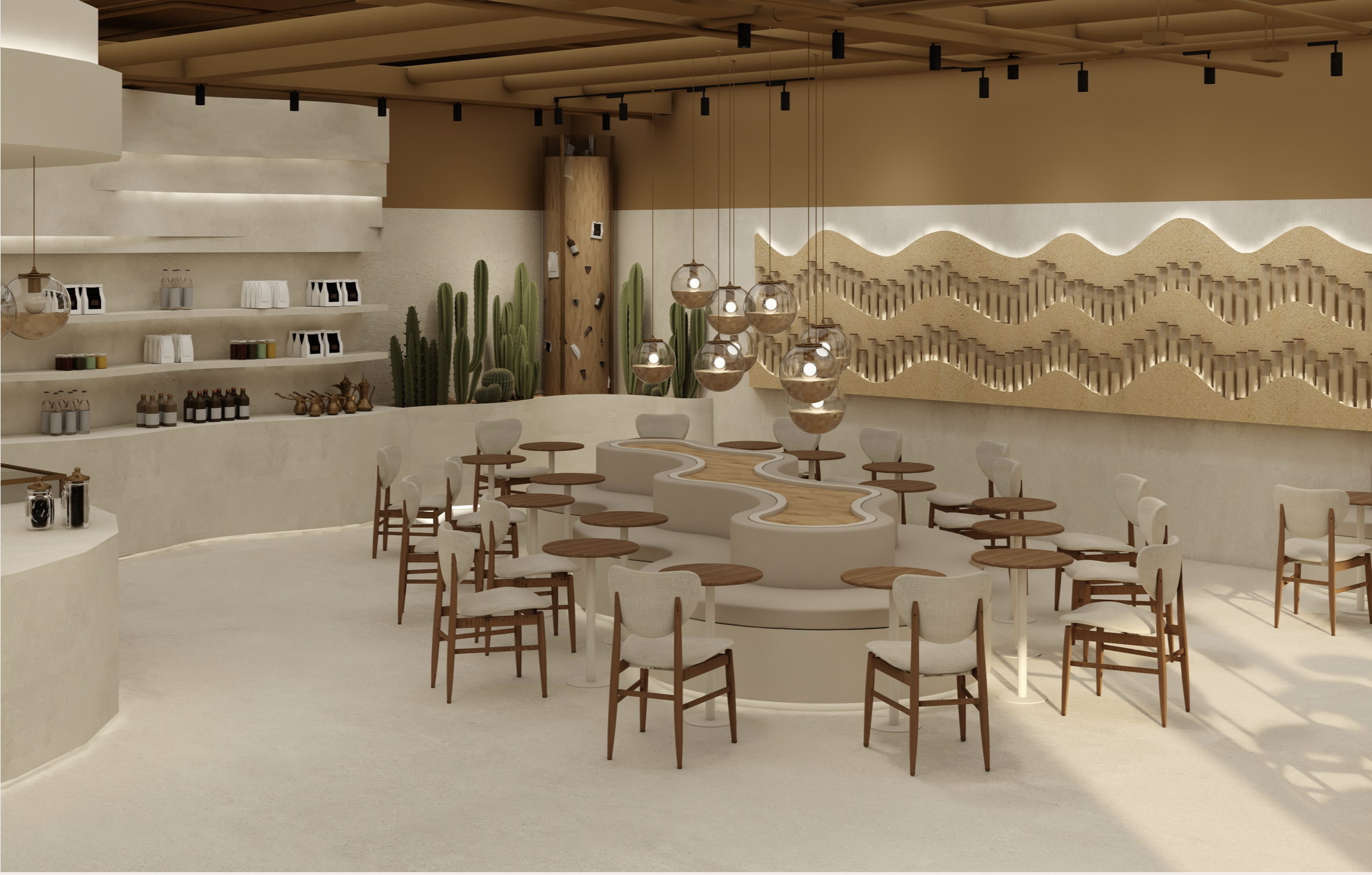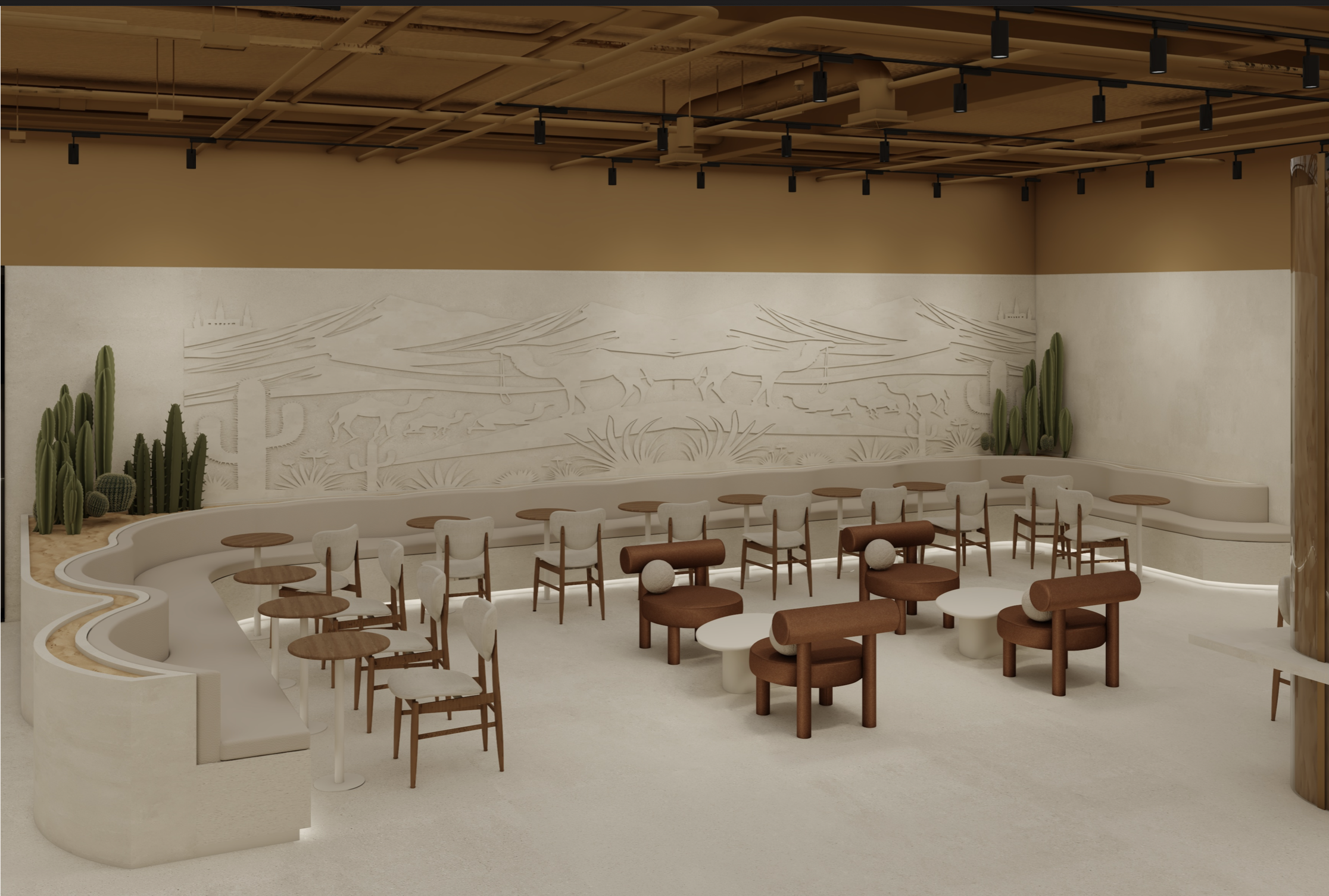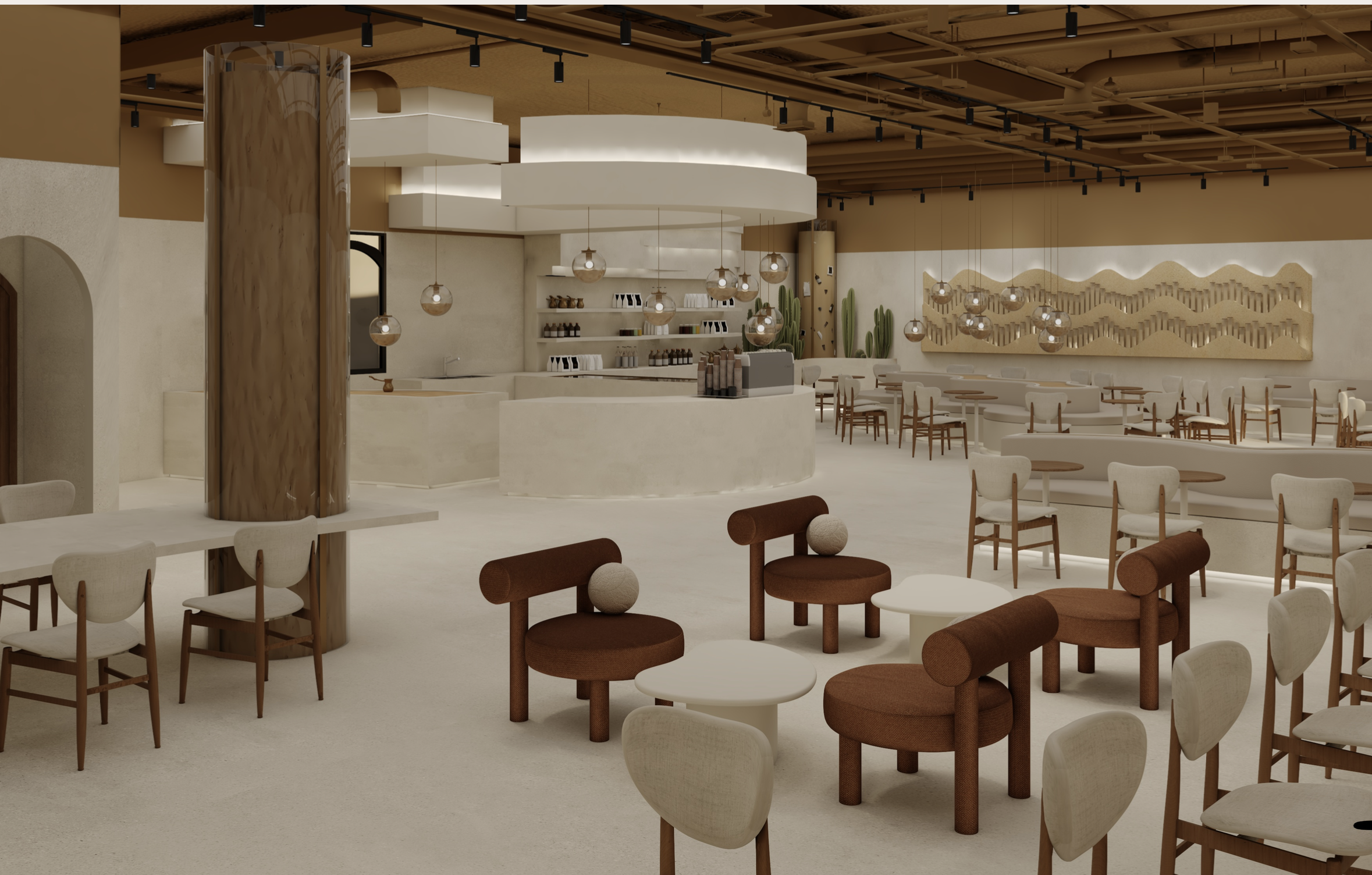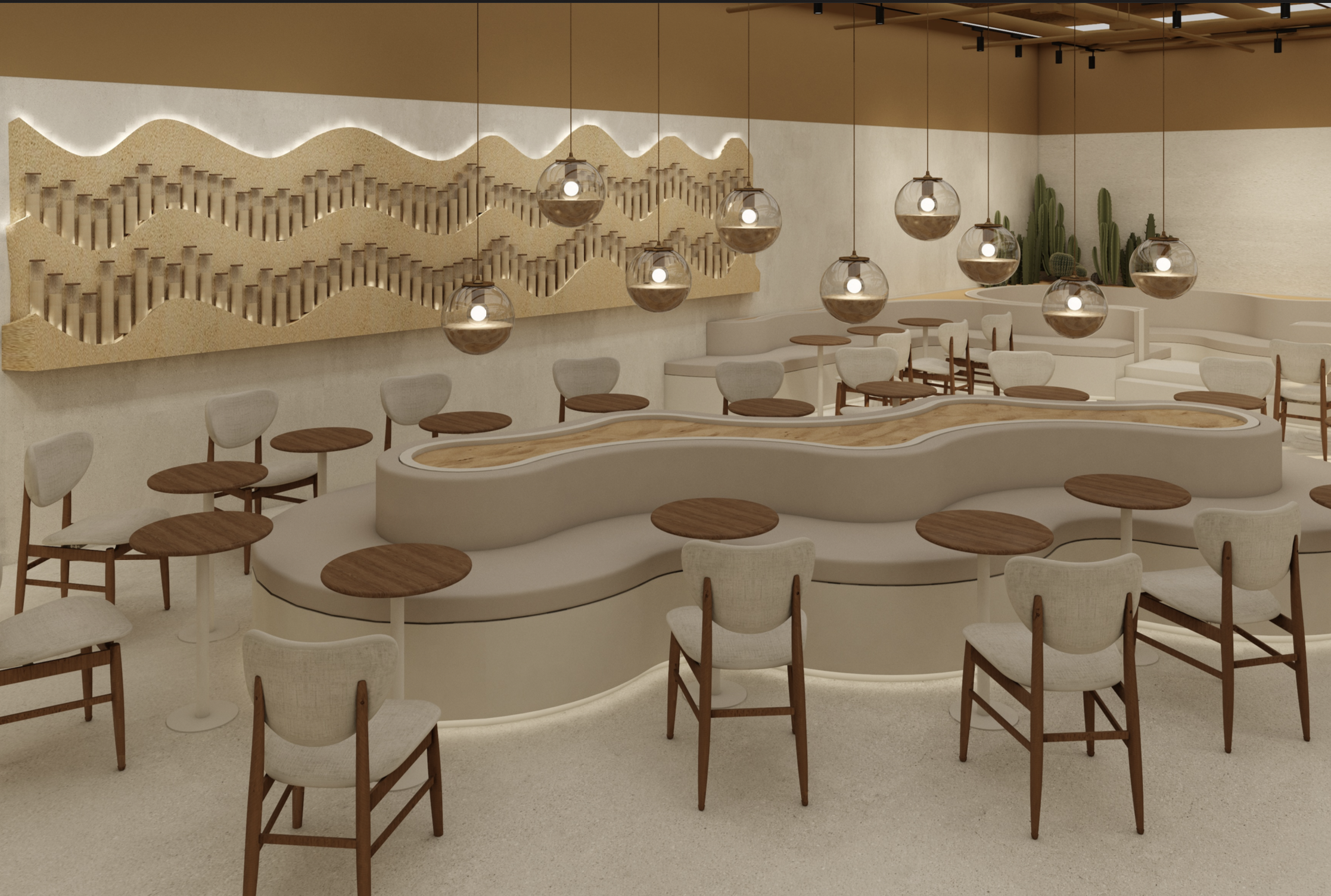 Explore the meticulously crafted spaces where tradition meets modern luxury. Each SandBrew location is designed as a sculptural dialogue with the desert's shifting dunes.
